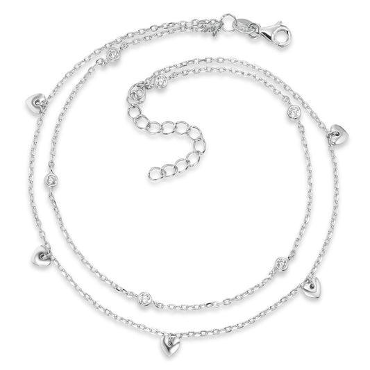 Fusskettchen Silber Zirkonia Herz 23-26 cm verstellbar