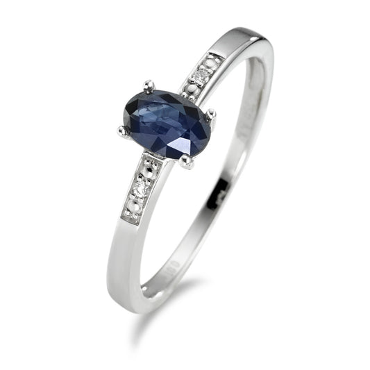 Fingerring 750/18 K Weissgold Saphir 0.01 ct, w-si, Diamant 0.01 ct, 2 Steine, Brillantschliff, w-si