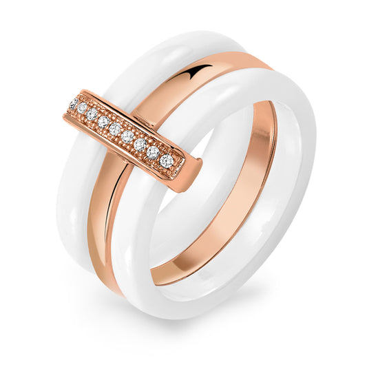 Fingerring Keramik, Bronze rosé vergoldet