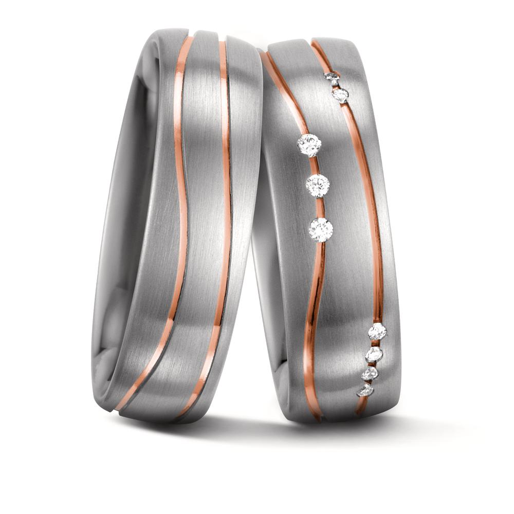 Partnerring 585/14 K Weissgold, 585/14 K Rotgold Diamant weiss, 0.06 ct, 9 Steine, w-si