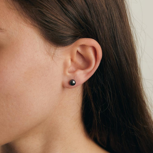 Stud earrings Stainless steel, Carbon Zirconia 2 Stones Ø8.5 mm