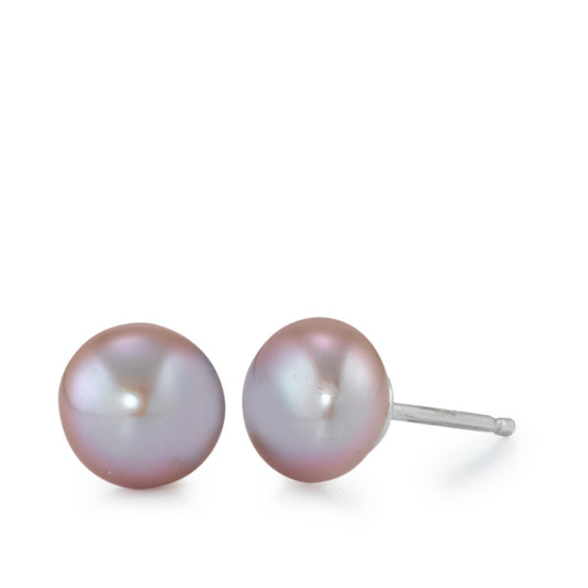 Stud earrings Silver Zirconia Rhodium plated Mother of pearl Flower Ø10 mm