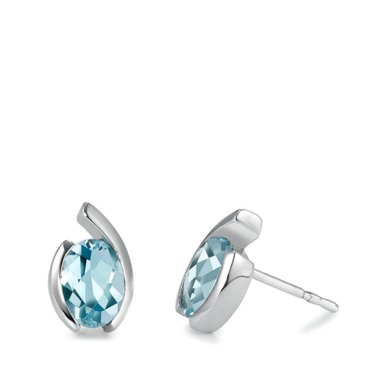 Stud earrings 9k Yellow Gold London Blue Topaz 2 Stones Ø5 mm