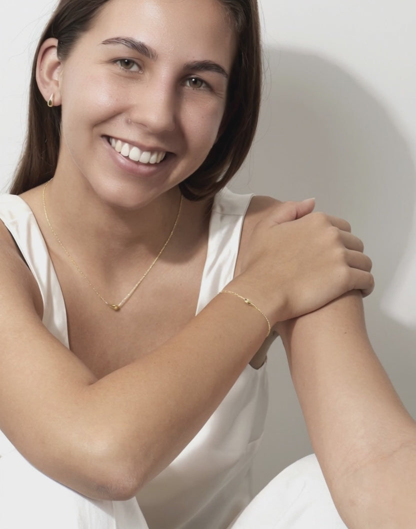 This elegant women's bracelet features a delicate silver chain with a sleek teardrop-shaped charm. Its minimalist design adds a touch of sophistication to any outfit, perfect for everyday wear or special occasions. Adjustable length ensures a comfortable fit for all wrists.