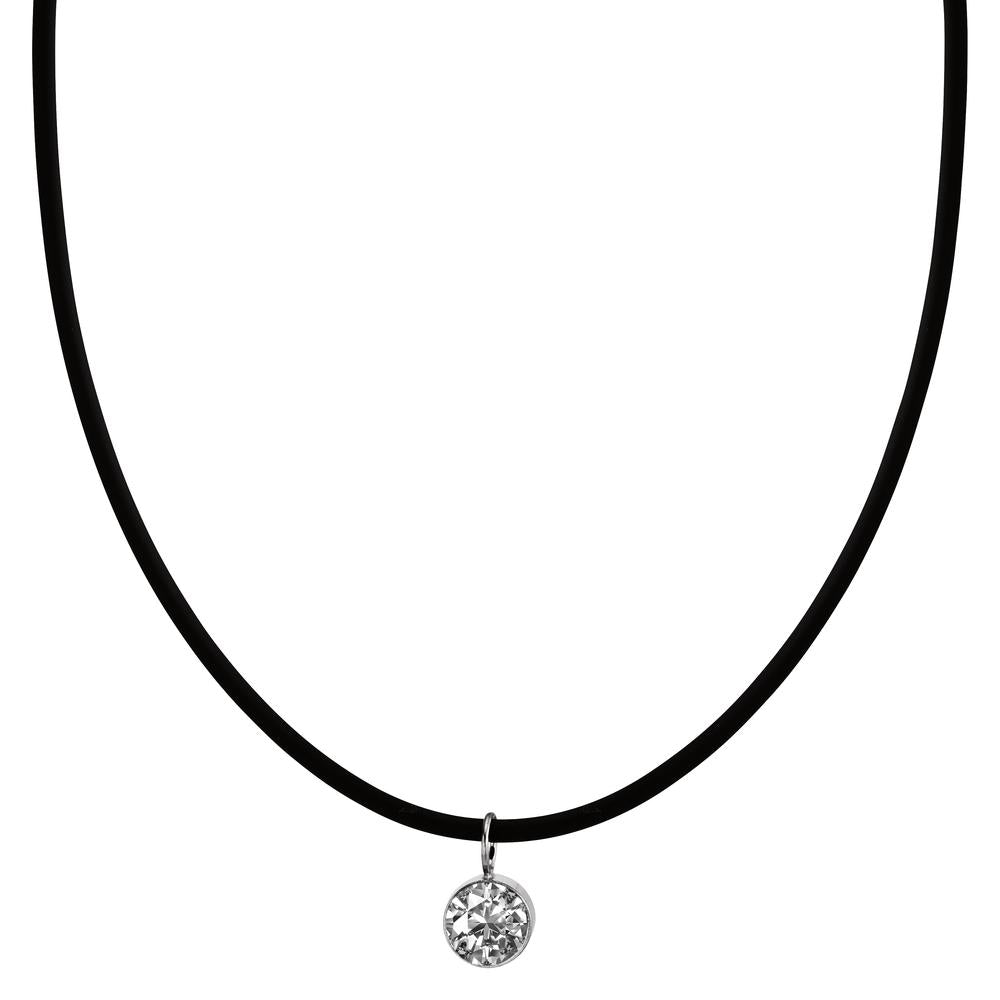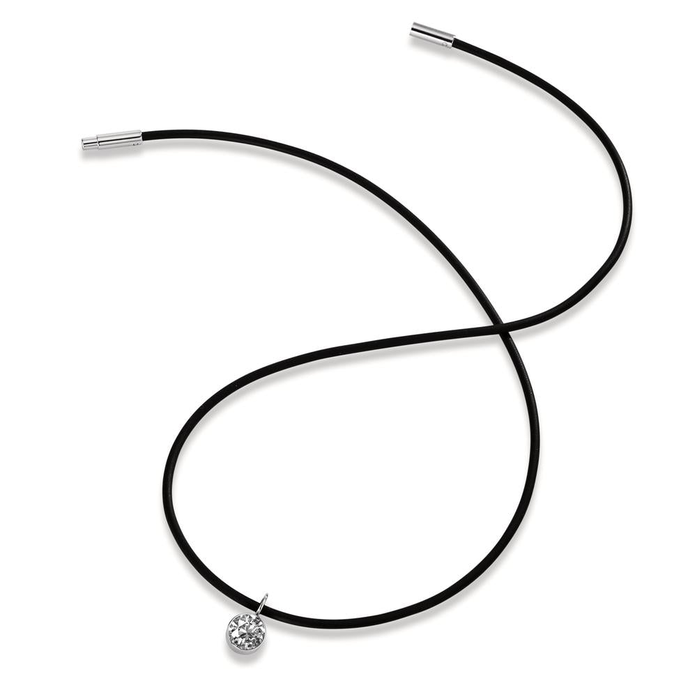 Necklace Rubber, Stainless steel, Silver Zirconia White Rhodium plated 42 cm
