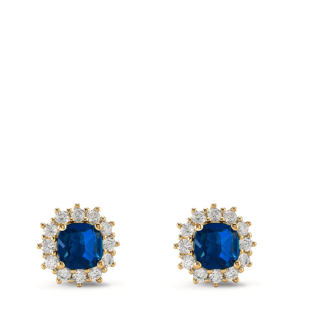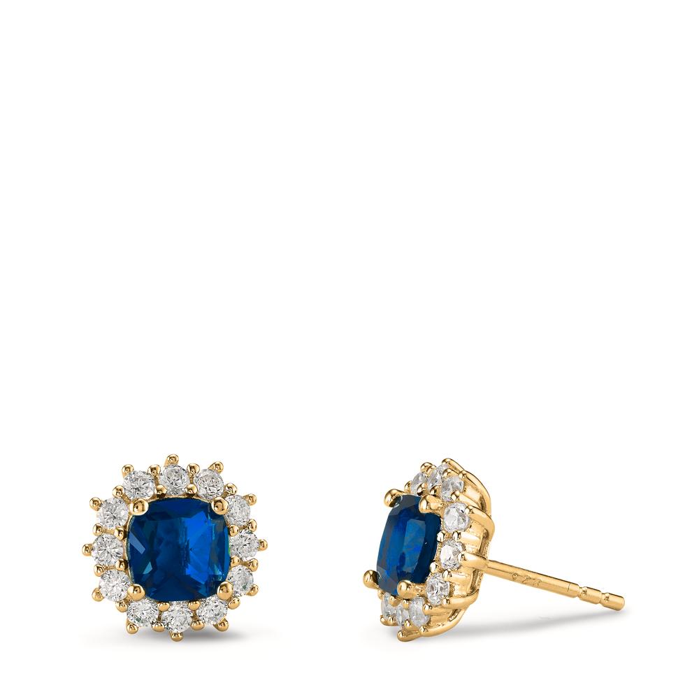 Stud earrings Silver Zirconia Blue Yellow Gold plated Ø10.5 mm