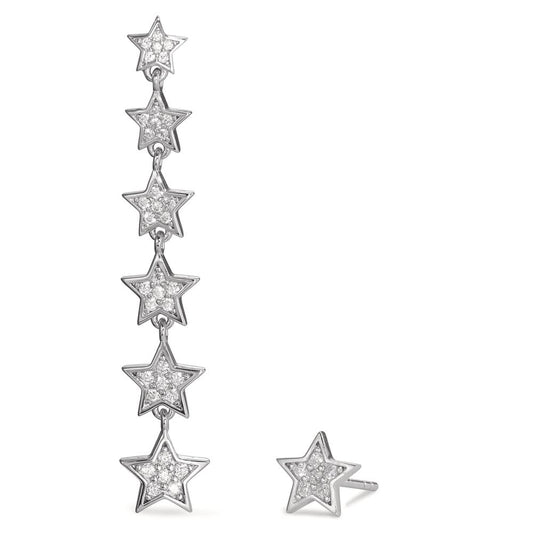 Pendientes Plata Circonita blanco, 12 piedras Rodio plateado estrella Ø6 mm
