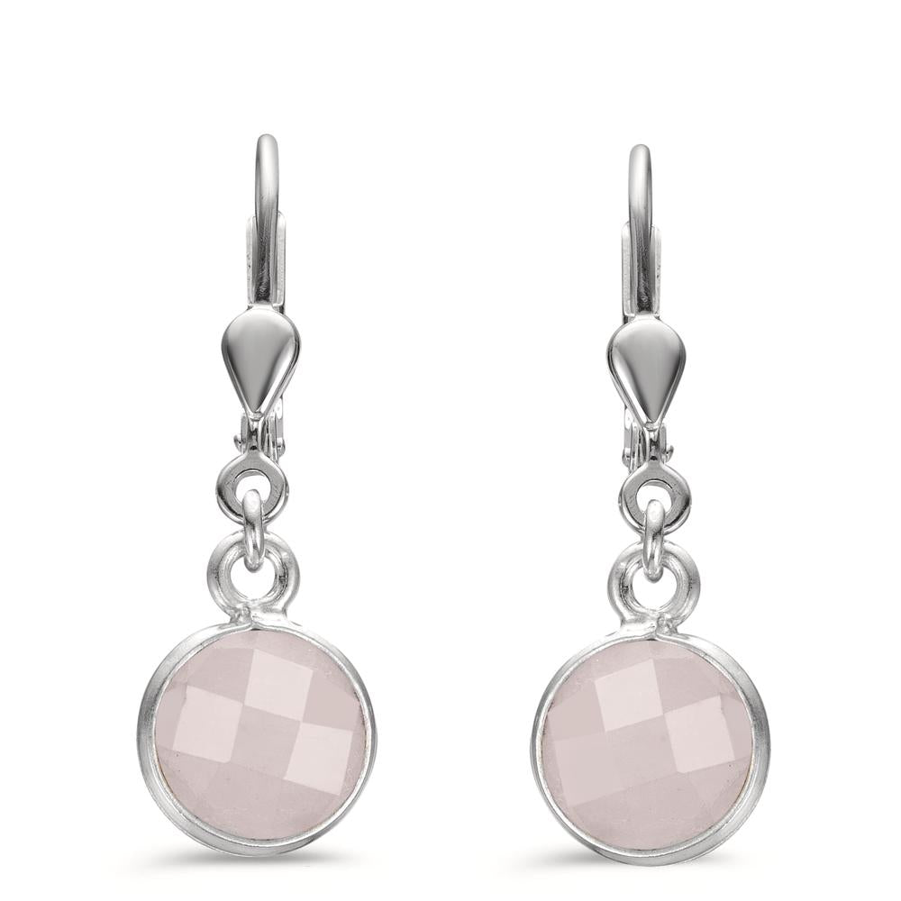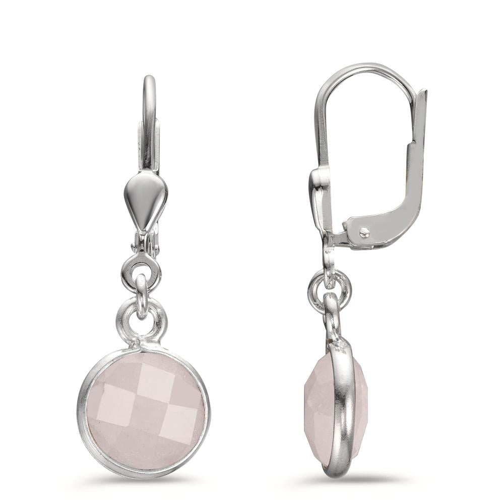 Pendientes Plata Cuarzo rosa 2 piedras Ø9 mm