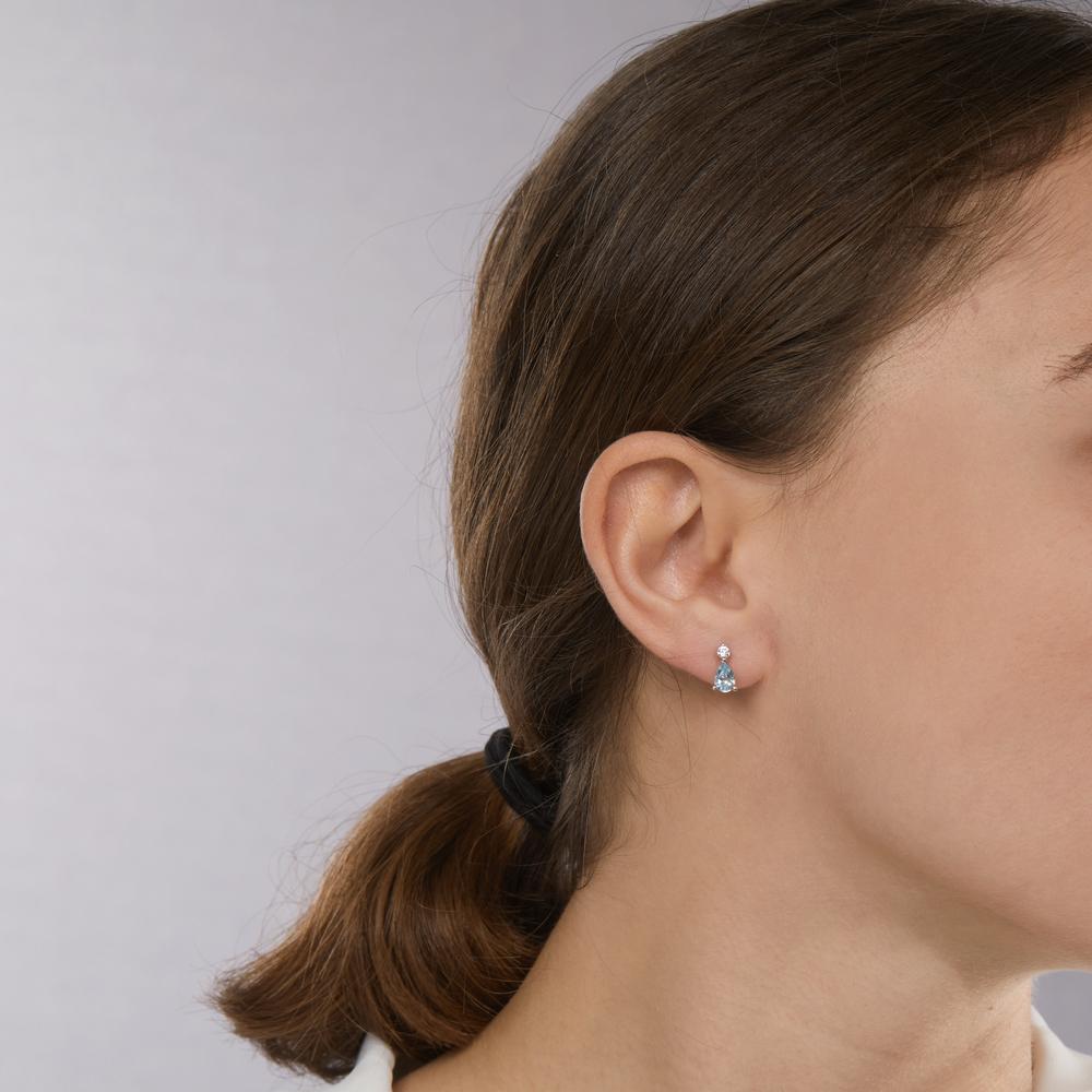 Élégants clous d'oreilles pour femme en argent sterling, ornés d'un topaze bleue en forme de poire et d'une pierre de zirconia étincelante. Un bijou raffiné qui ajoute une touche de couleur et d'éclat à toutes vos tenues, idéal pour toute occasion.