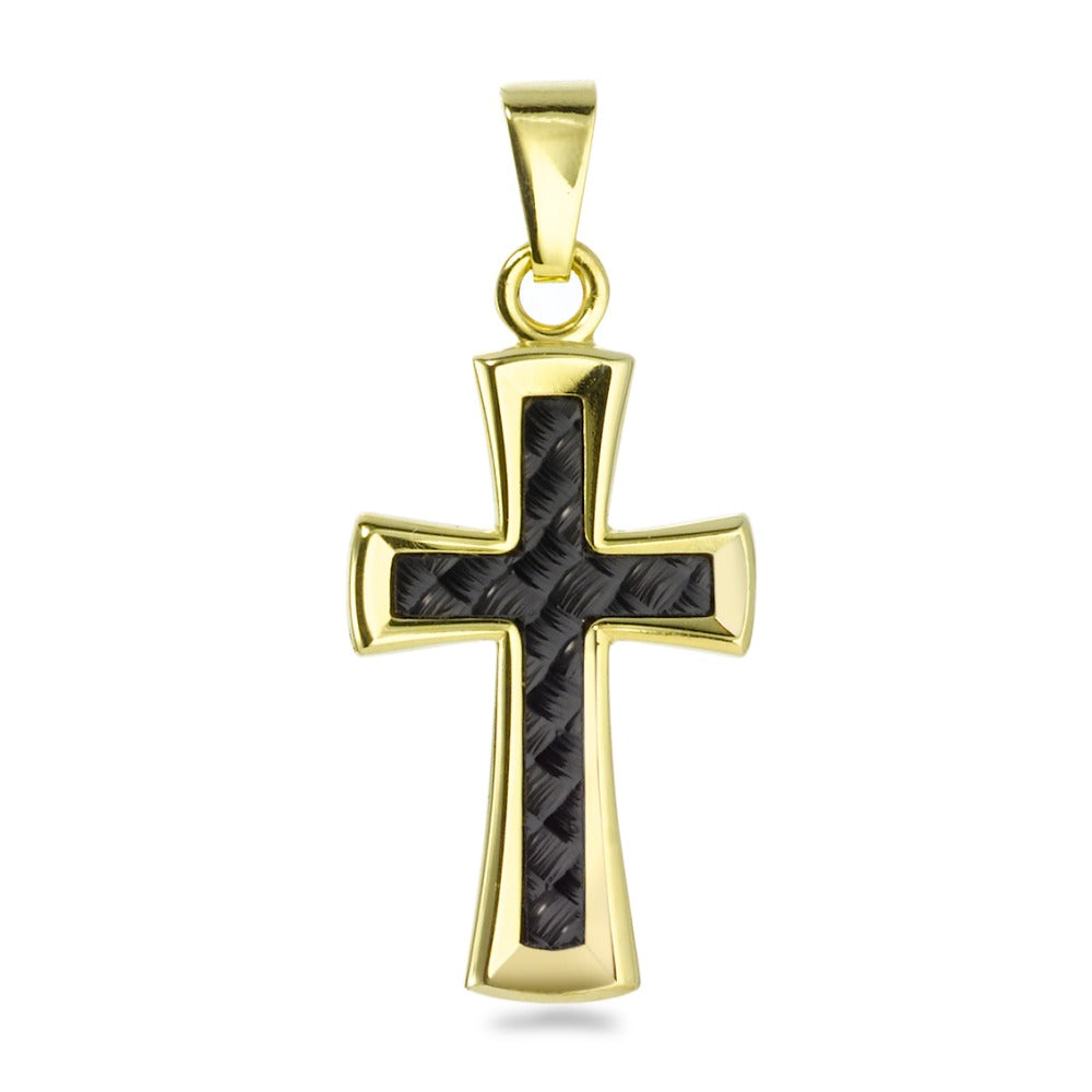 Anhänger 375/9 K Gelbgold, Carbon Kreuz