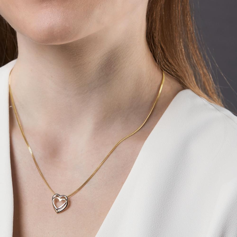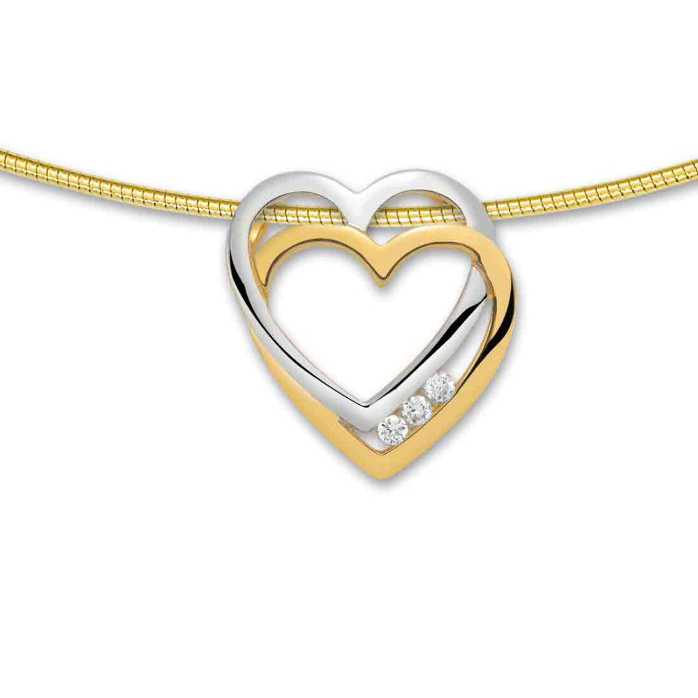 Dieser elegante Damenanhänger verbindet 375er Gelb- und Weißgold zu einem stilvollen Herzdesign. Drei funkelnde Diamanten verleihen dem Schmuckstück zusätzlichen Glanz. Ein zeitloses Accessoire, das Liebe und Modeharmonie perfekt vereint. Ideal als Geschenk oder für den eigenen Look.