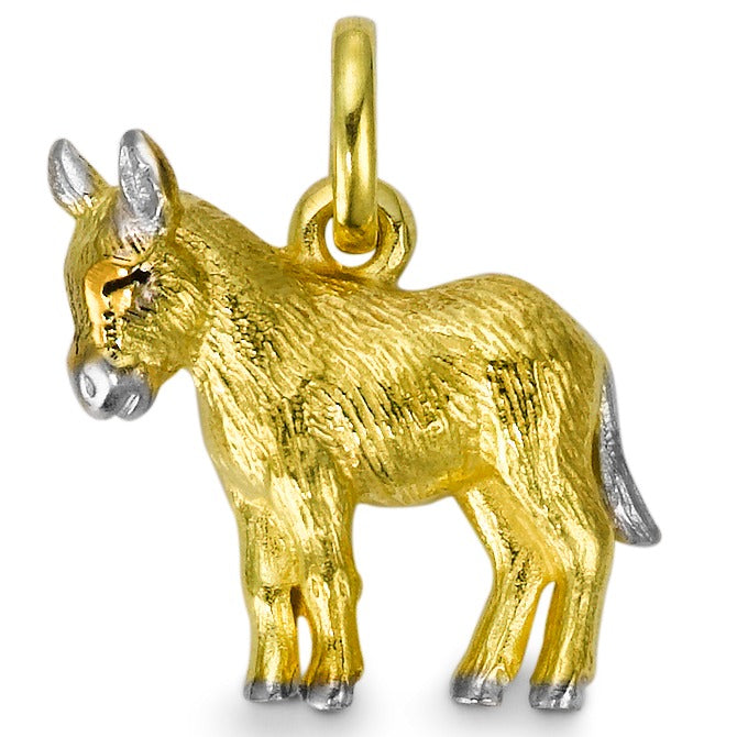 Dieser stilvolle Herrenanhänger aus 375er Gelbgold zeigt einen detailreich gestalteten Esel. Feine Verzierungen in Weißgold verleihen dem Schmuckstück einen modernen Look. Ein einzigartiges Accessoire für Tierliebhaber und Goldschmuck-Fans.