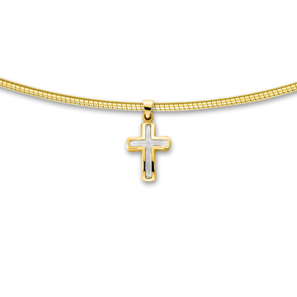 Eleganter Anhänger in 375er Gelbgold mit einem zeitlosen Kreuz-Design. Die Kombination aus Gelb- und Weißgold verleiht dem Schmuckstück besonderen Charme. Perfekt als symbolträchtiges Accessoire oder Geschenk für besondere Anlässe.