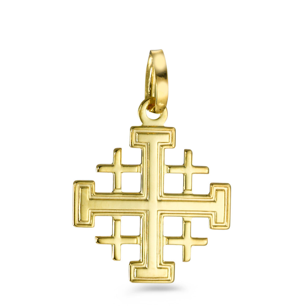 Eleganter Kreuz-Anhänger aus 375 Gelbgold. Dieses stilvolle Schmuckstück besticht durch sein feines Design mit fünf Kreuzen und verleiht jedem Outfit eine besondere Note. Perfekt als persönliches Geschenk oder für den täglichen Gebrauch. Hochwertige Verarbeitung garantiert.