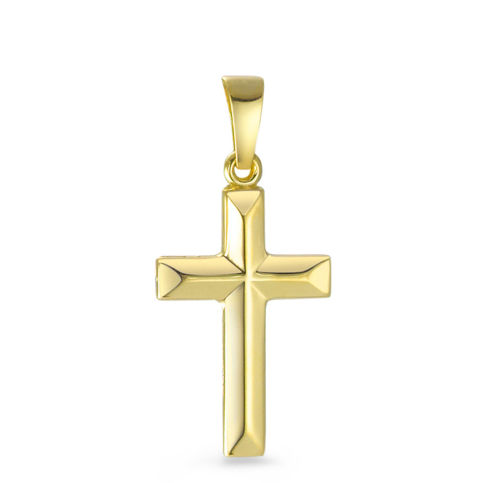 Eleganter Kreuz-Anhänger aus 375er Gelbgold, ideal als klassisches Schmuckstück oder Geschenk. Die polierte Oberfläche verleiht dem Anhänger einen edlen Glanz und unterstreicht zeitlose Symbolkraft. Perfekt für jeden Anlass und vielseitig kombinierbar.