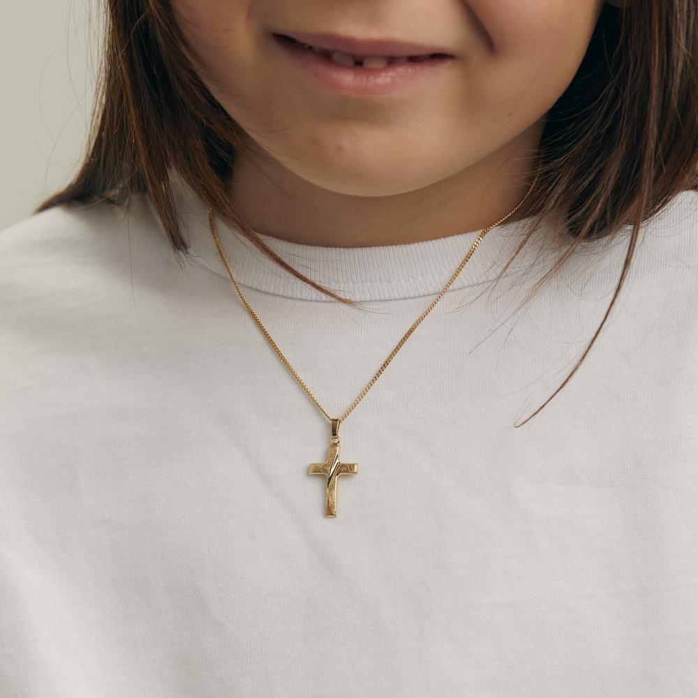 Eleganter Kreuz-Anhänger aus hochwertigem 375er Gelbgold. Das Schmuckstück besticht durch seine feine Verarbeitung und das zeitlose Design, das sowohl zu festlichen Anlässen als auch im Alltag getragen werden kann. Ein edles Symbol mit besonderer Bedeutung.