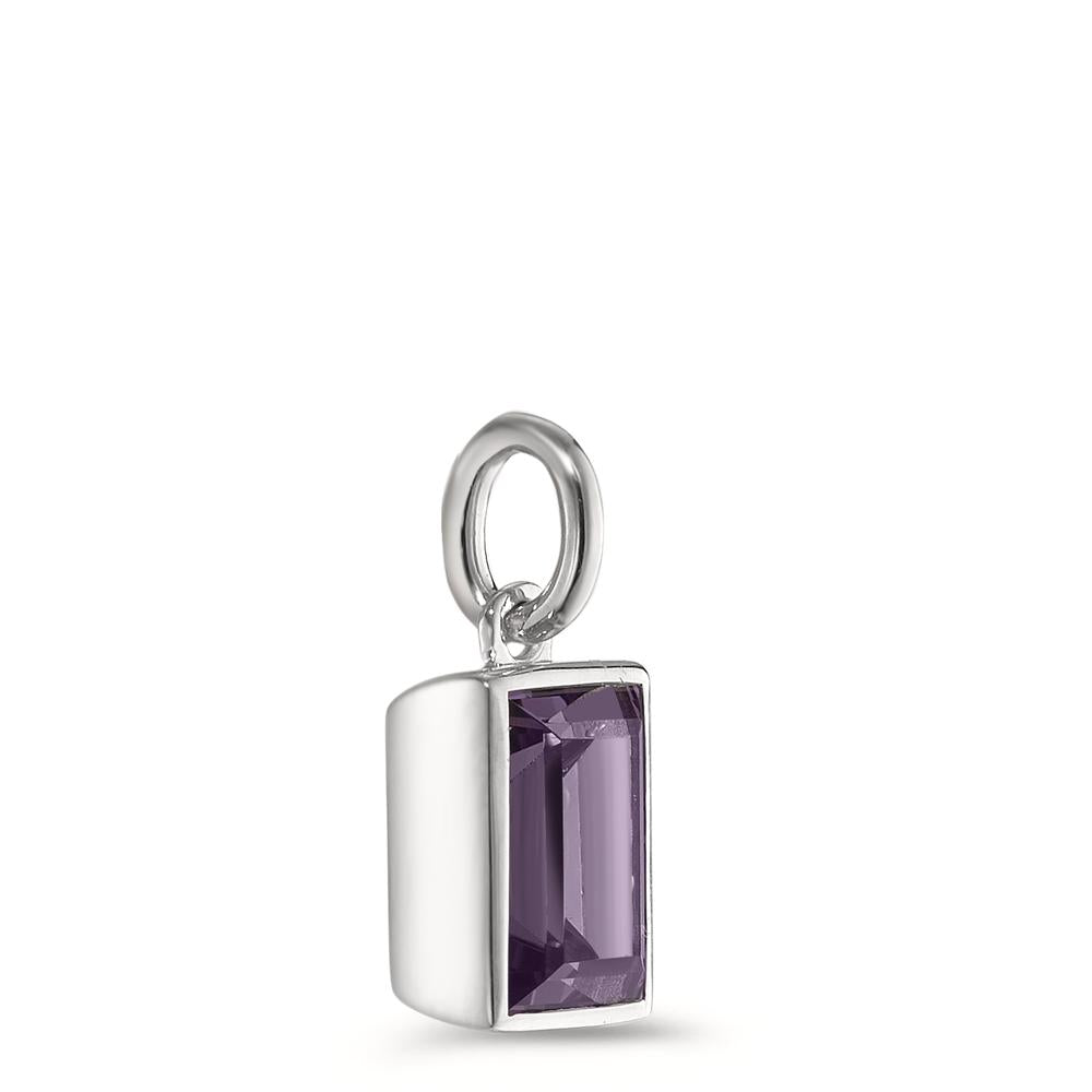 Eleganter Damenanhänger aus 375er Weißgold mit einem rechteckigen Amethysten in tiefvioletter Farbe. Der schlichte, moderne Stil macht diesen Anhänger zum perfekten Accessoire für jeden Anlass. Ein zeitloses Schmuckstück, das Eleganz und Farbvielfalt verbindet.