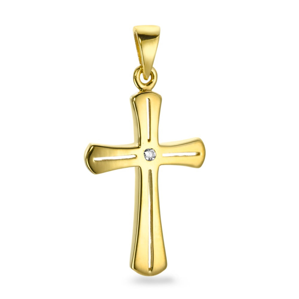Anhänger 750/18 K Gelbgold Diamant 0.01 ct, p1 Kreuz