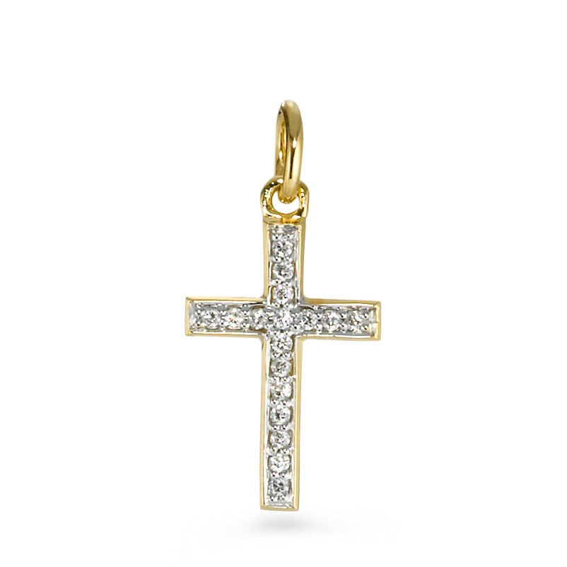 Anhänger 750/18 K Gelbgold Diamant 0.08 ct, 17 Steine, w-si Kreuz
