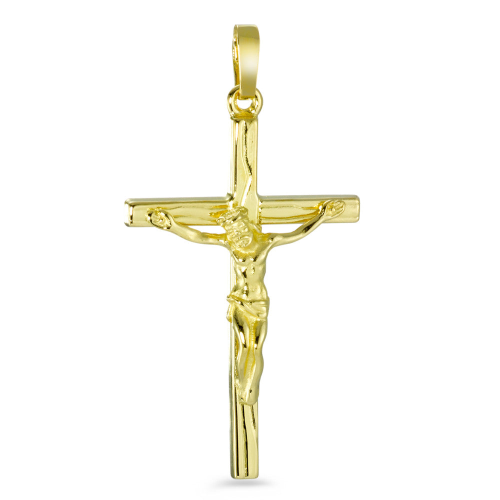 Eleganter Kreuz-Anhänger aus hochwertigem 750er Gelbgold. Fein gearbeitet mit detailreicher Darstellung und glänzender Oberfläche, eignet sich dieser zeitlose Schmuckstück perfekt als religiöses Symbol oder stilvolles Accessoire für jeden Anlass.