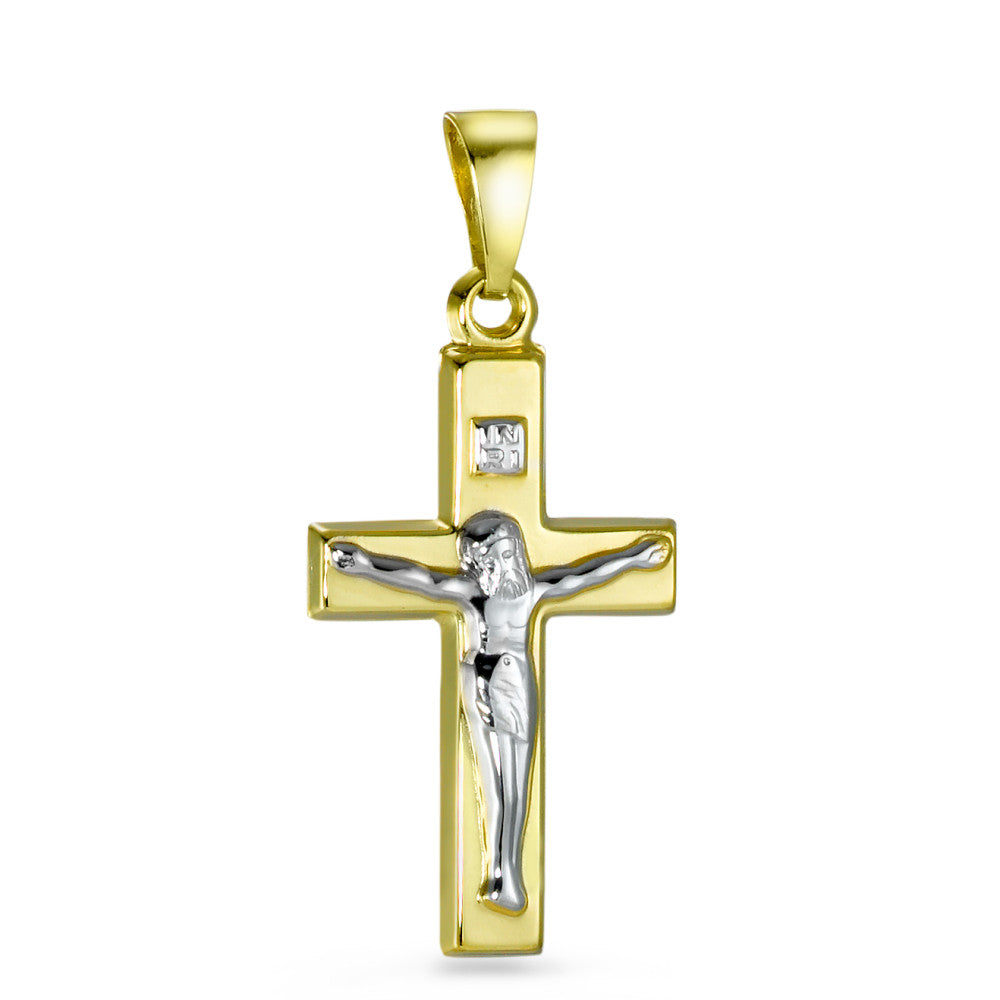 Dieser elegante Anhänger aus 750er Gelbgold vereint klassischen Stil mit spiritueller Symbolik. Das detailliert gearbeitete Kreuz mit silberfarbenem Christusmotiv ist ein zeitloses Schmuckstück, das zu jedem Anlass getragen werden kann und besondere Bedeutung trägt.