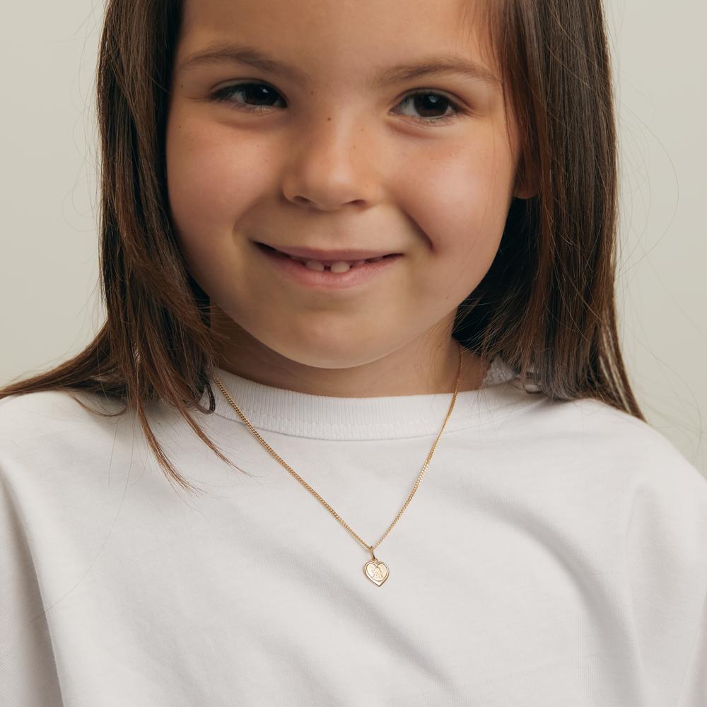 Wunderschöner Kinderanhänger aus 750er Gelbgold in Herzform mit liebevoll gestaltetem Schutzengel-Motiv. Ein besonderer Glücksbringer für Ihr Kind, der Schutz und Geborgenheit symbolisiert. Perfekt als Geschenk zur Taufe, Geburtstag oder besonderen Anlässen.