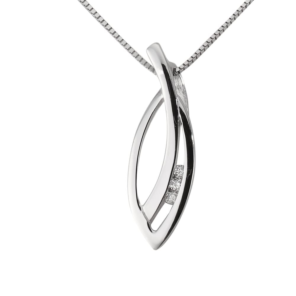 Eleganter Damen-Anhänger aus hochwertigem 750er Weißgold in modernem Design. Drei funkelnde Diamanten setzen effektvolle Akzente und verleihen dem Schmuckstück zeitlose Eleganz. Perfekt für besondere Anlässe oder als edles Geschenk.