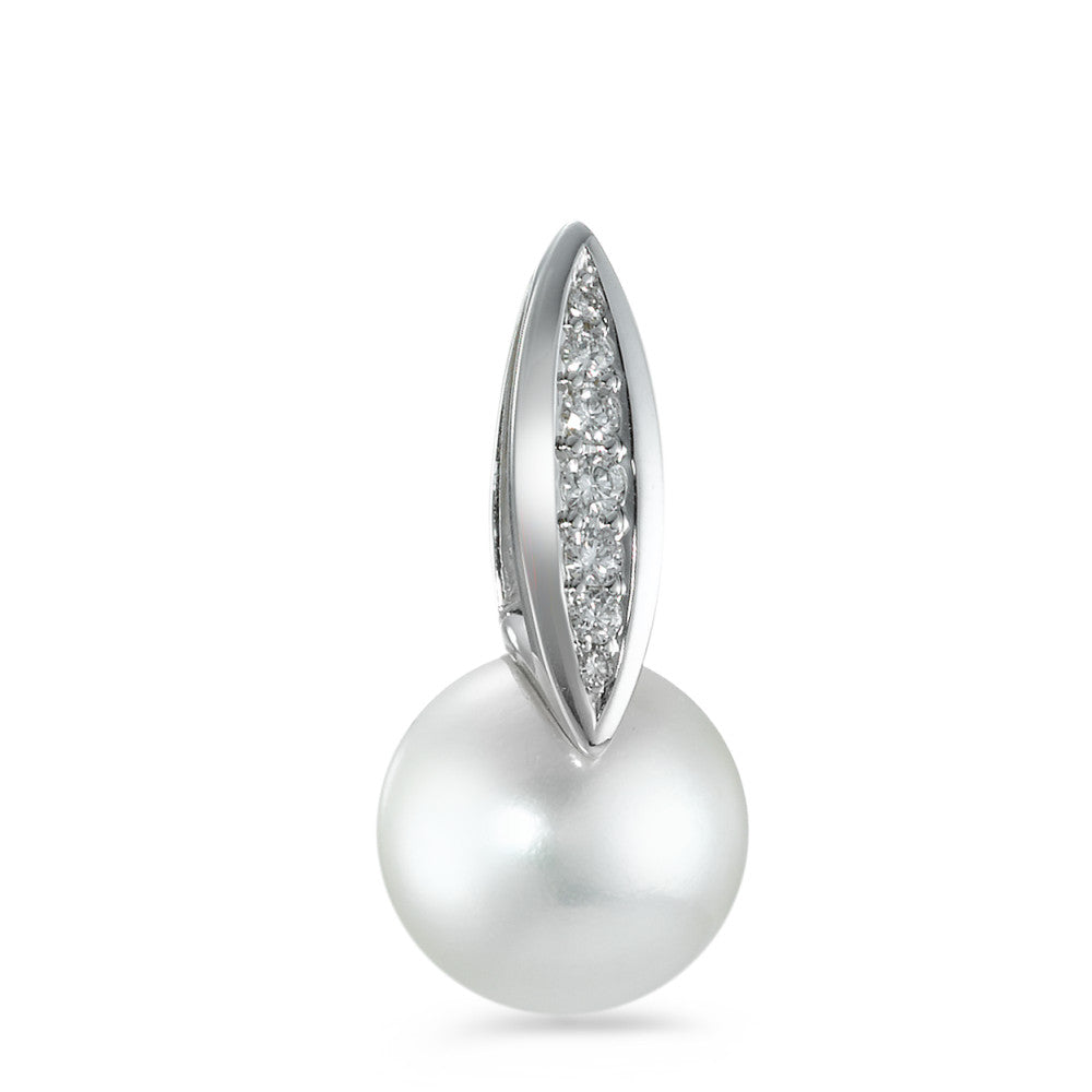 Anhänger 750/18 K Weissgold Diamant 0.11 ct, 7 Steine, w-si Süsswasserzuchtperle weiss 10-11 mm