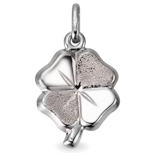 Zauberhafter Mädchen-Anhänger aus hochwertigem 750 Weißgold in Form eines Kleeblatts. Das elegante Design verbindet polierte und strukturierte Flächen für einen besonderen Glanz. Perfektes Glückssymbol und stilvolles Accessoire für jeden Tag.