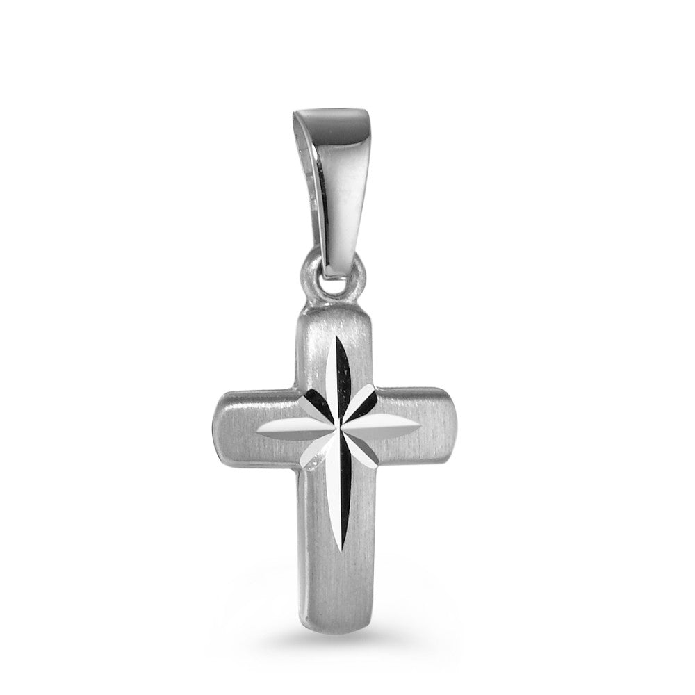 Eleganter Anhänger aus 750er Weißgold in Kreuzform mit einer dezenten, polierten Sterngravur in der Mitte. Das zeitlose Design macht diesen Kreuz-Anhänger zum perfekten Accessoire für jeden Anlass – ideal als Geschenk oder persönliche Schmuckbereicherung.