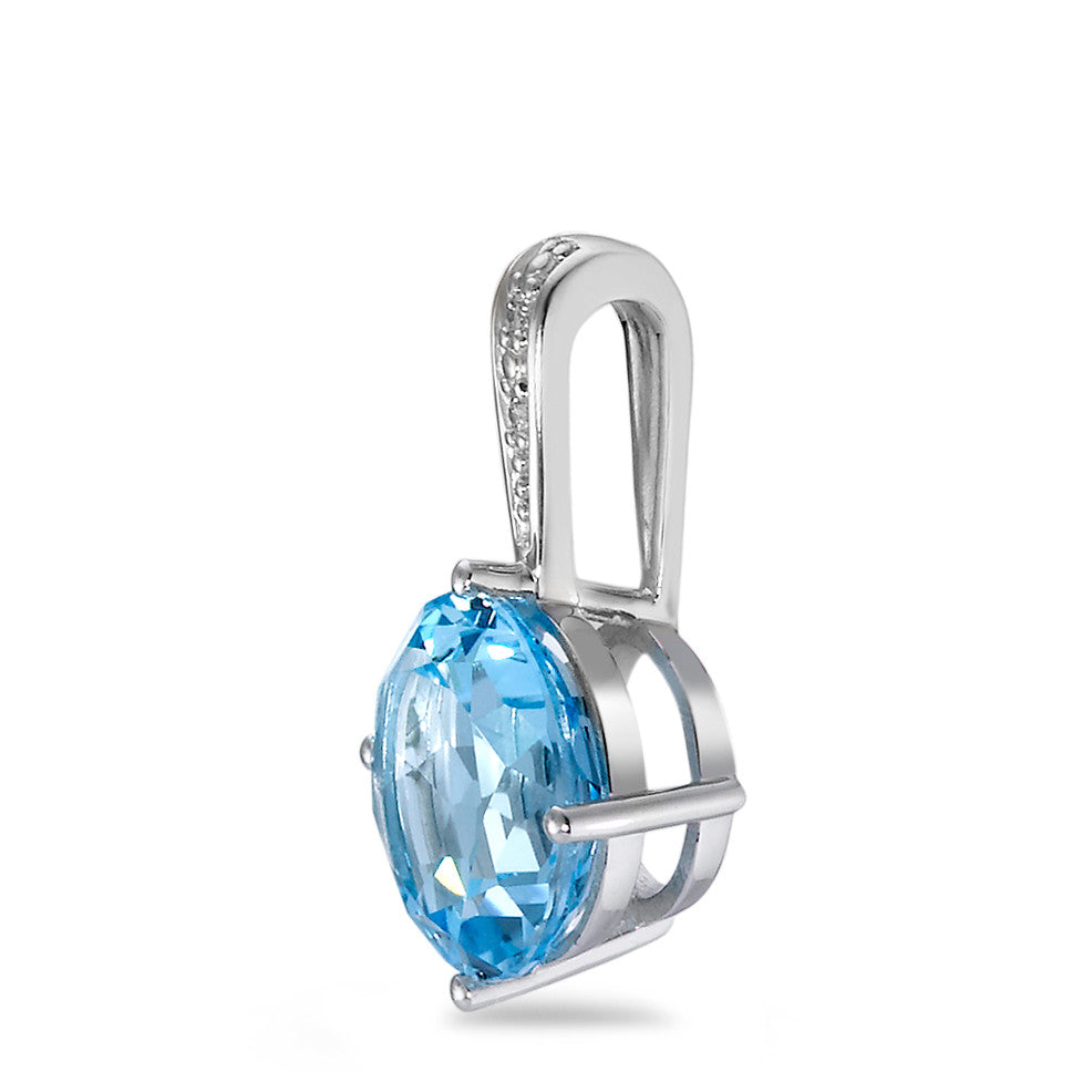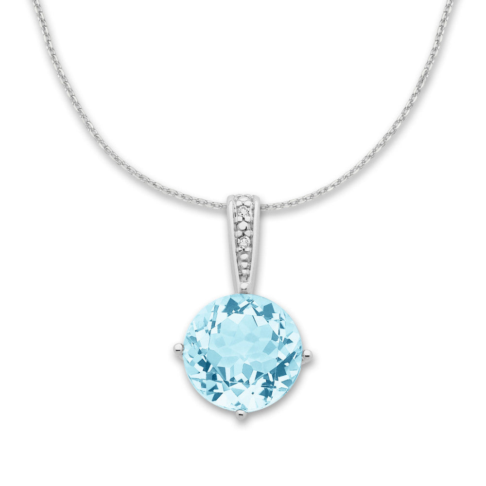 Eleganter Damen-Anhänger aus 750er Weißgold mit funkelndem, rundem Topas und zarten Diamanten auf der Öse. Ein zeitloses Schmuckstück, das durch das Zusammenspiel von edlem Weißgold und strahlenden Edelsteinen besticht – perfekt für besondere Anlässe oder den täglichen Stil.