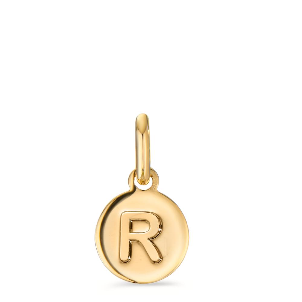 Eleganter Anhänger aus Bronze in Goldoptik mit eingraviertem Buchstaben "R". Der runde, glänzende Tag ist ein persönliches Highlight für Ketten oder Armbänder. Perfekt als Geschenk oder zur individuellen Schmuckgestaltung. Zeitlos und hochwertig verarbeitet.