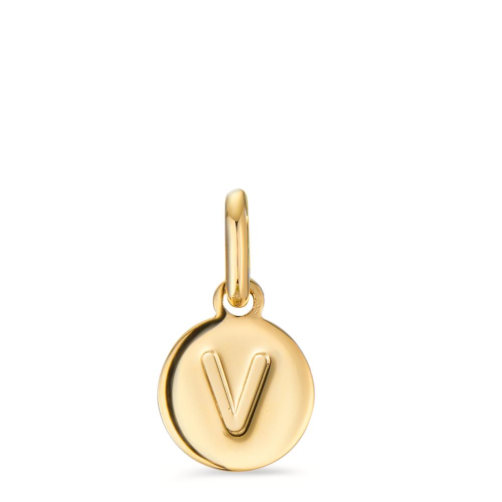 Wunderschöner Anhänger aus Bronze in edler Goldoptik mit dem Buchstaben "V". Der runde Anhänger ist dezent gestaltet und ideal, um persönliche Initialen stilvoll zu präsentieren. Perfekt für Halsketten oder Armbänder und ein tolles Geschenk für jeden Anlass.