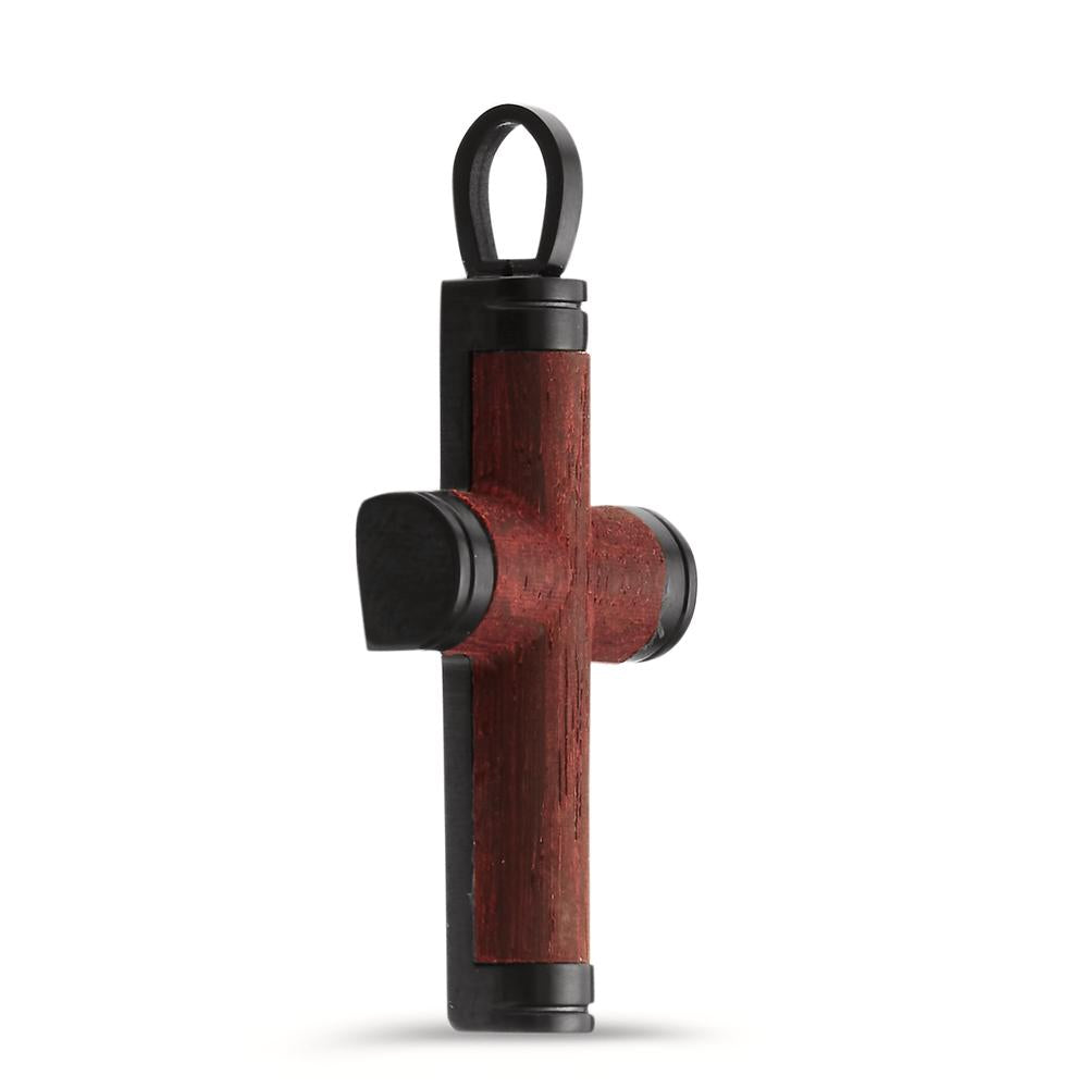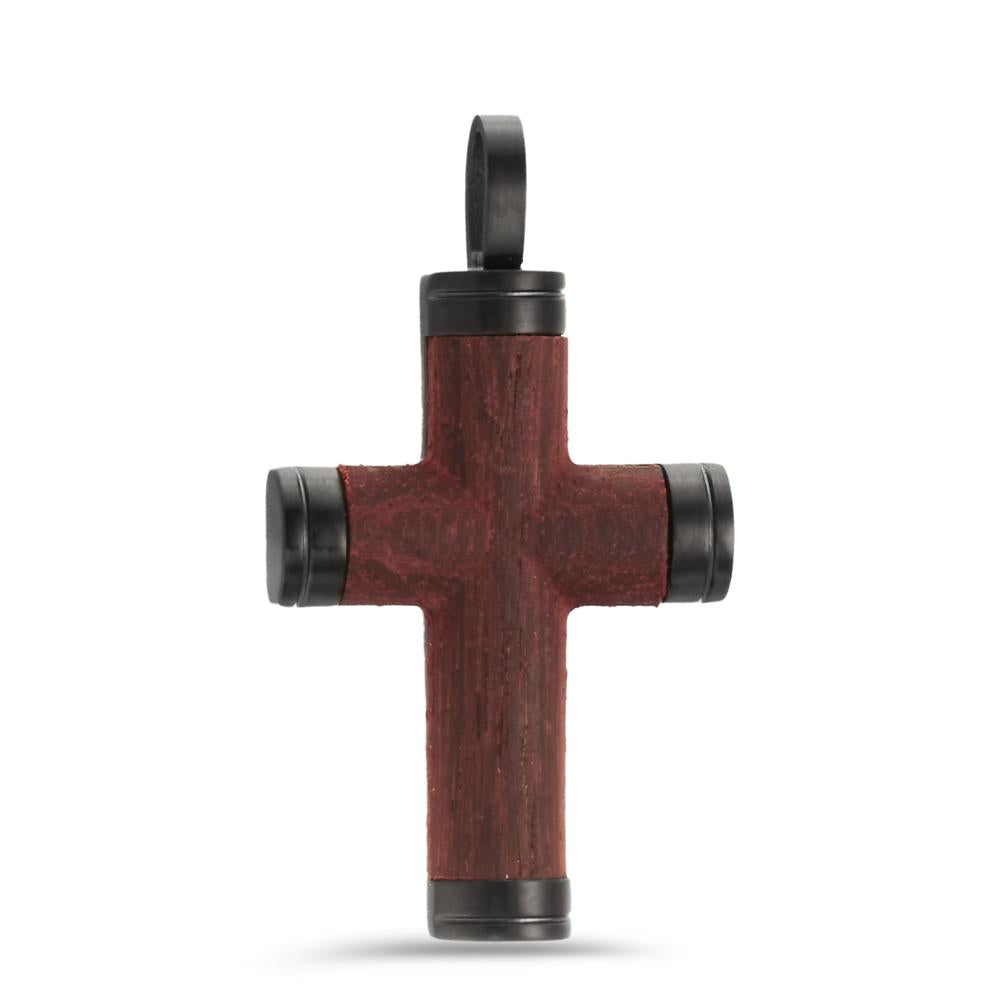 Moderner Herrenanhänger in Kreuzform aus robustem Edelstahl mit dunkelrotem Holz-Detail. Ein stilvolles und markantes Accessoire für den Alltag, das durch die Kombination von Metall und Holz edel wirkt. Perfekt für Männer, die schlichte Eleganz und hochwertigen Schmuck schätzen.