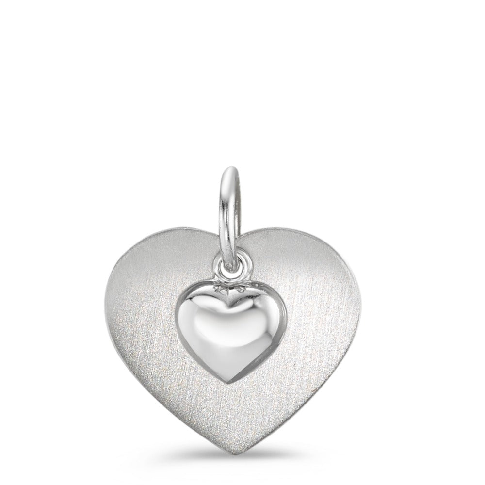 Eleganter Damen Anhänger aus hochwertigem Silber in Herzform. Das Design kombiniert ein mattiertes großes Herz mit einem glänzenden, kleinen Herzen in der Mitte – ein liebevolles Symbol für Zuneigung und Stil. Perfektes Schmuckstück für jeden Anlass.