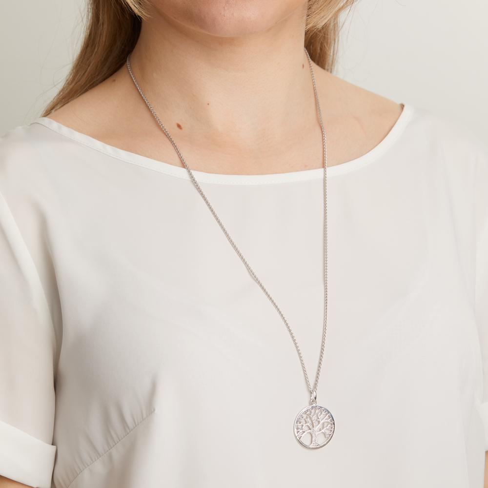 Zeitlos schöner Damen-Anhänger aus hochwertigem Silber, gestaltet als filigraner Lebensbaum im runden Rahmen. Der Lebensbaum symbolisiert Wachstum, Stärke und Verbundenheit. Ein elegantes Schmuckstück, das sich vielseitig kombinieren lässt und jeden Look veredelt.