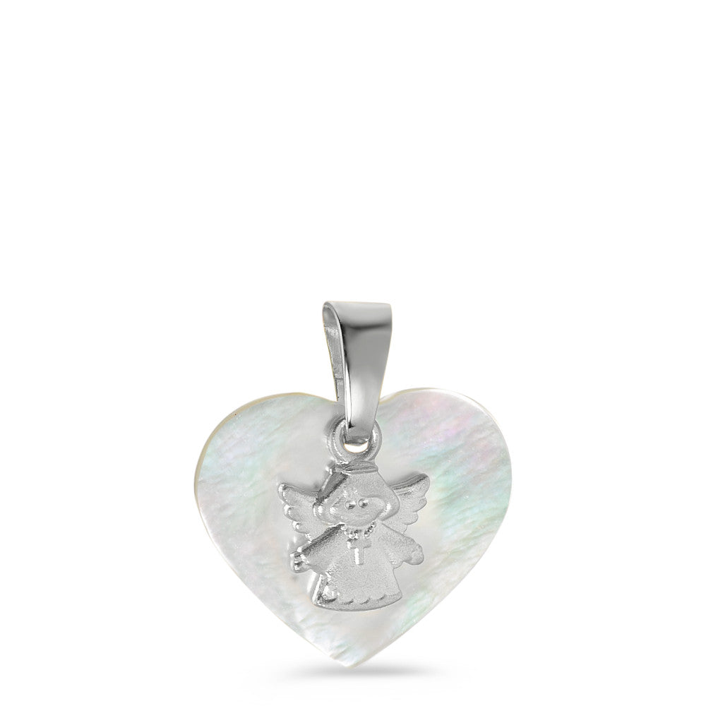 Zauberhafter Baby Anhänger aus feinem Silber mit zartem Schutzengelmotiv. Das Herz aus schimmerndem Perlmutt verleiht dem Schmuckstück eine edle und sanfte Ausstrahlung. Ein liebevolles Geschenk zum Schutz und zur Erinnerung für die Kleinsten.