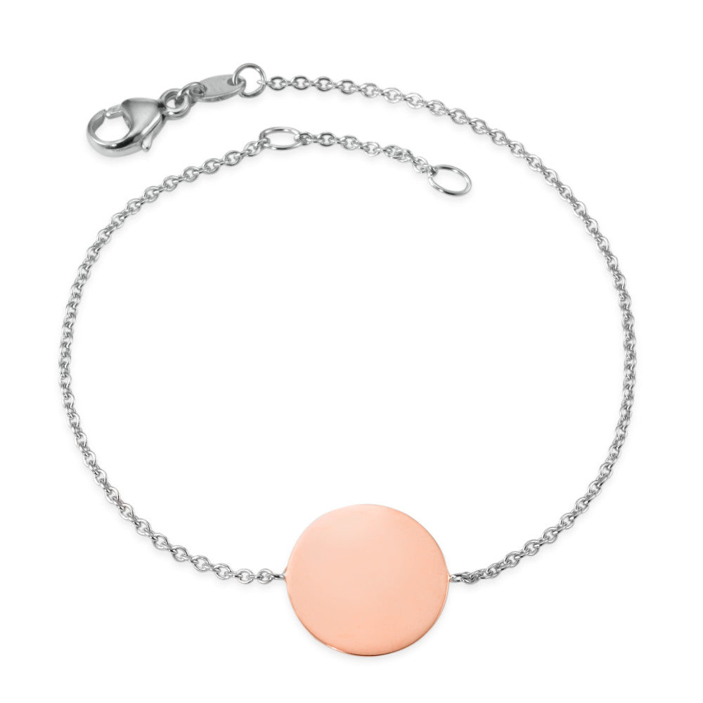 Elegantes Damenarmband aus hochwertigem 750er Weißgold mit einem stilvollen, runden Mittelstück aus 750er Rotgold. Das feine Design vereint klassische Eleganz mit modernem Charme und ist perfekt für jeden Anlass. Ein zeitloses Schmuckstück für Damen, das edle Akzente setzt.