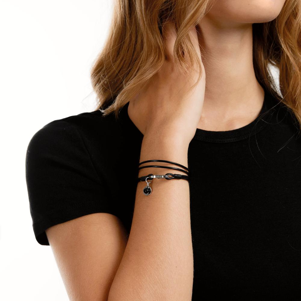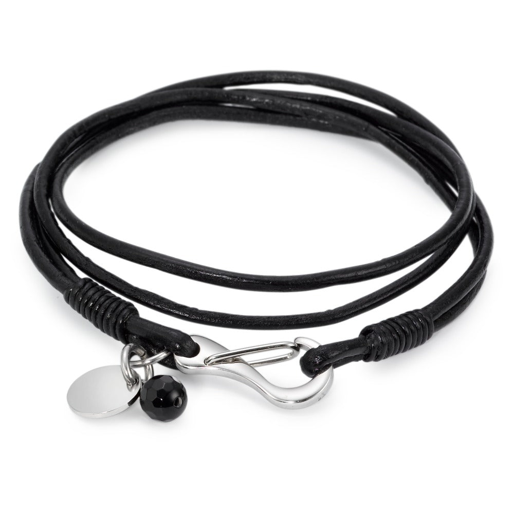 Dieses Damen Armband besticht durch hochwertiges schwarzes Leder, das sich angenehm um das Handgelenk legt. Das elegante Edelstahl-Verschlussdetail sorgt für sicheren Halt und verleiht dem Schmuckstück modernen Charme. Ein minimalistisches Accessoire für jeden Anlass.