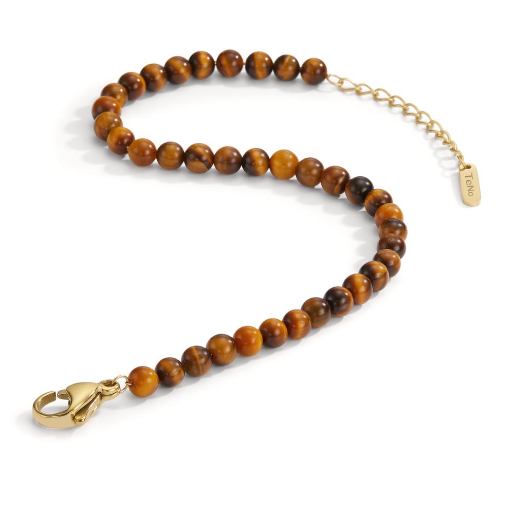 Armband Muse in Gold aus Edelstahl mit Tigerauge, 17.5-19.5 cm verstellbar, Ø4 mm