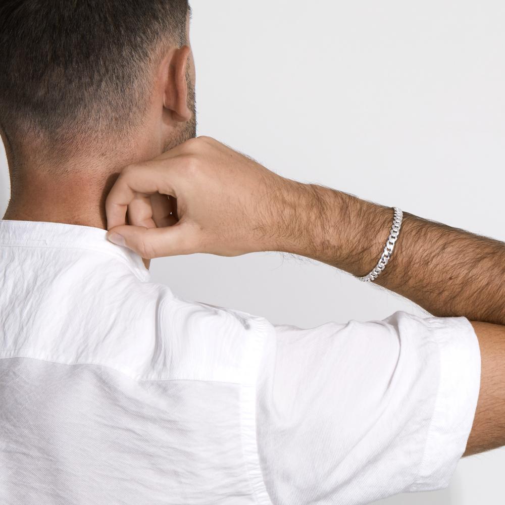 Zeitloses Herrenarmband aus hochwertigem Silber. Mit seiner robusten Panzerkettengestaltung und dem sicheren Karabinerverschluss ist es ideal für den Alltag und besondere Anlässe. Ein klassisches Schmuckstück, das Stil und Maskulinität perfekt vereint.