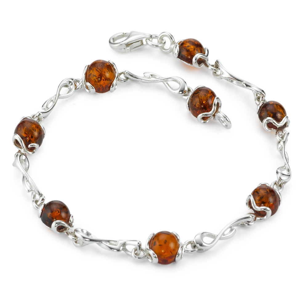 Elegantes Damen-Armband aus hochwertigem Silber, verziert mit warm schimmernden Bernstein-Kugeln. Das filigrane Design kombiniert edle Handwerkskunst mit natürlicher Schönheit. Ein zeitloses Accessoire, das jedes Outfit stilvoll ergänzt. Perfekt für jeden Anlass.