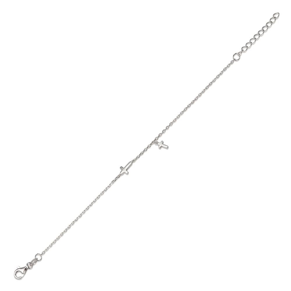 Elegantes Damenarmband aus hochwertigem Silber mit zwei zarten Kreuz-Anhängern. Das fein gearbeitete Design verleiht jedem Outfit einen dezenten, spirituellen Akzent. Verstellbare Länge für perfekten Sitz und angenehmen Tragekomfort. Zeitlos und stilvoll.
