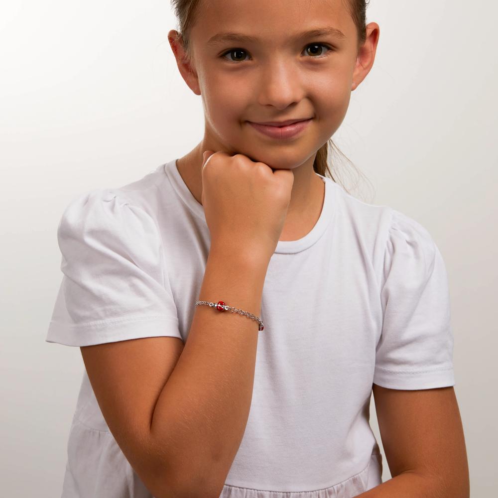 Dieses süße Mädchen-Armband aus hochwertigem Silber begeistert mit drei bunten Marienkäfer-Anhängern. Der zarte Gliederchain sorgt für einen perfekten Sitz am Handgelenk. Ein liebevolles Accessoire, das Glück und Freude bringt – ideal für kleine Entdeckerinnen!