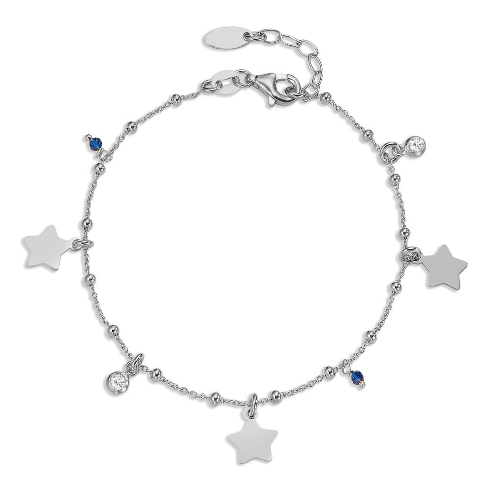 Elegantes Damen-Armband aus hochwertigem Silber mit zarten Stern-Anhängern und funkelnden Zirkonia-Steinen. Feine Perlen-Details und blaue Schmucksteine verleihen dem Armband einen modernen, verspielten Look – perfekt für stilbewusste Frauen, die das Besondere lieben.