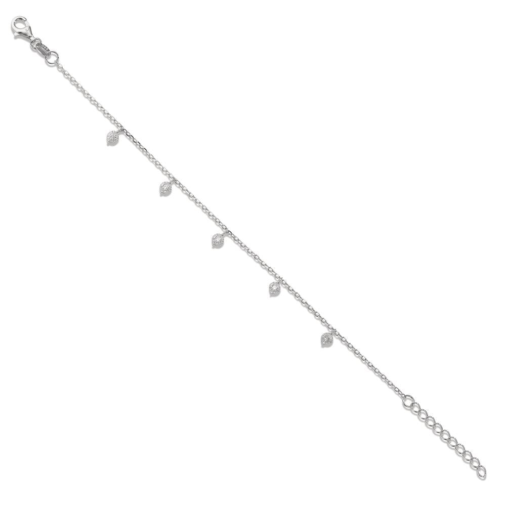 Elegantes Damenarmband aus hochwertigem Silber, verziert mit funkelnden Zirkonia-Steinen. Das zarte Design mit kleinen Anhängern verleiht jedem Outfit einen edlen Glanz. Verstellbare Länge für perfekten Tragekomfort – ideal für jeden Anlass.