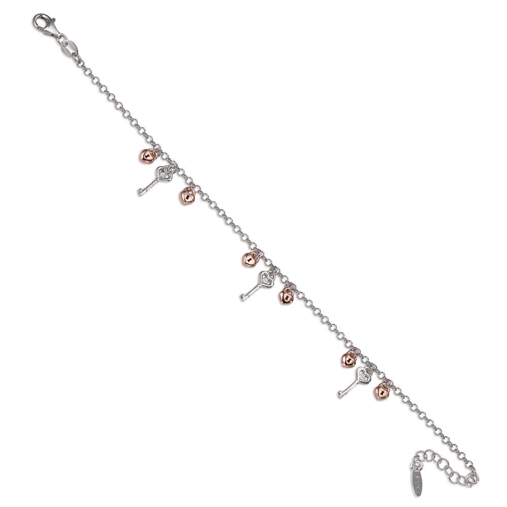 Armband Silber Zirkonia bicolor Schlüssel Herz 17-19 cm verstellbar