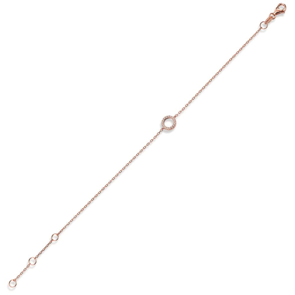 Elegantes Damenarmband aus Silber mit zartem, rosévergoldetem Finish. Der runde Anhänger ist mit funkelnden Zirkonia-Steinen besetzt, die dem Schmuckstück einen edlen Glanz verleihen. Ein stilvolles Accessoire für jeden Anlass und perfektes Geschenk.