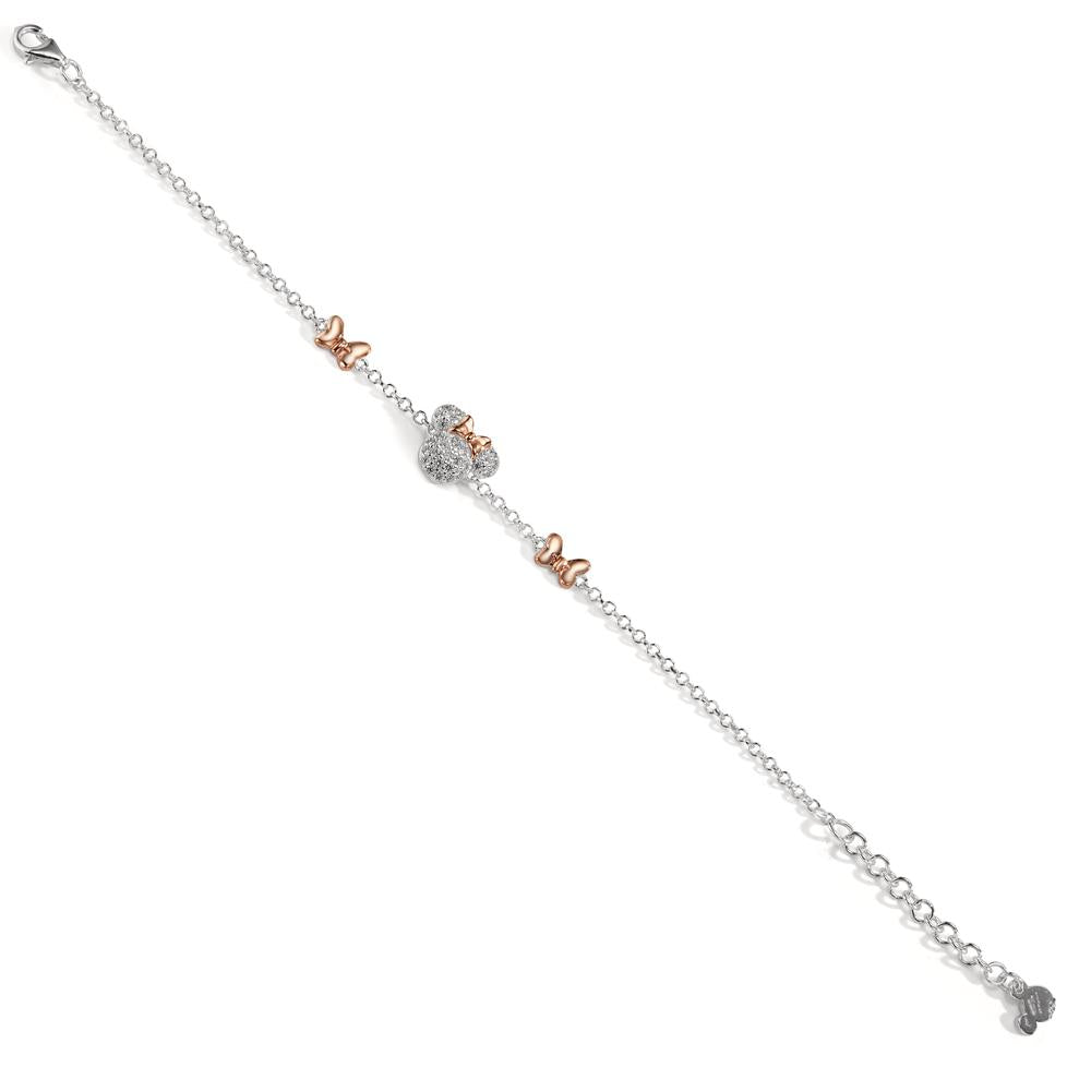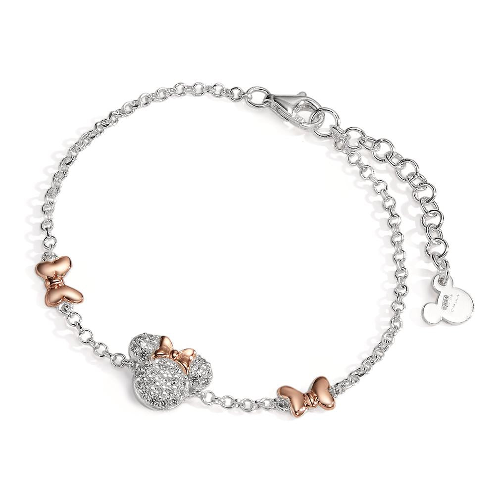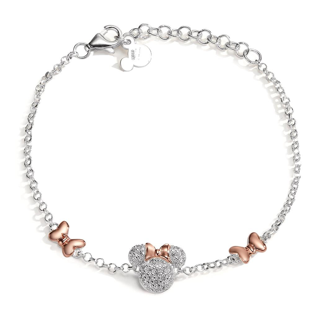Dieses Kinderarmband aus hochwertigem Silber begeistert mit funkelnden Zirkonia-Steinen. Die süßen Schleifen und der Minnie-Mouse-Anhänger mit roségoldfarbenen Details machen es zum perfekten Accessoire für kleine Prinzessinnen. Verstellbare Länge für besten Tragekomfort.