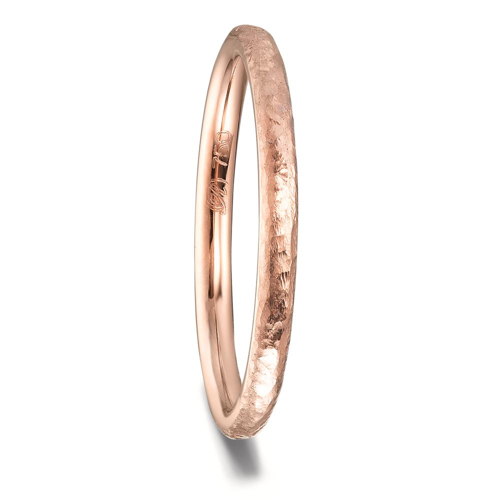 Eleganter Damen Beisteckring aus hochwertigem 750 Rotgold. Mit seiner feinen, gehämmerten Oberfläche besticht er durch zeitlose Schlichtheit und Vielseitigkeit. Perfekt zum Kombinieren mit Verlobungs- oder Eheringen und ideal als täglicher Begleiter.